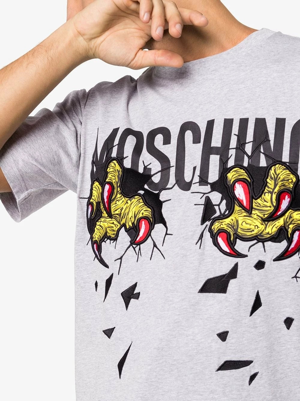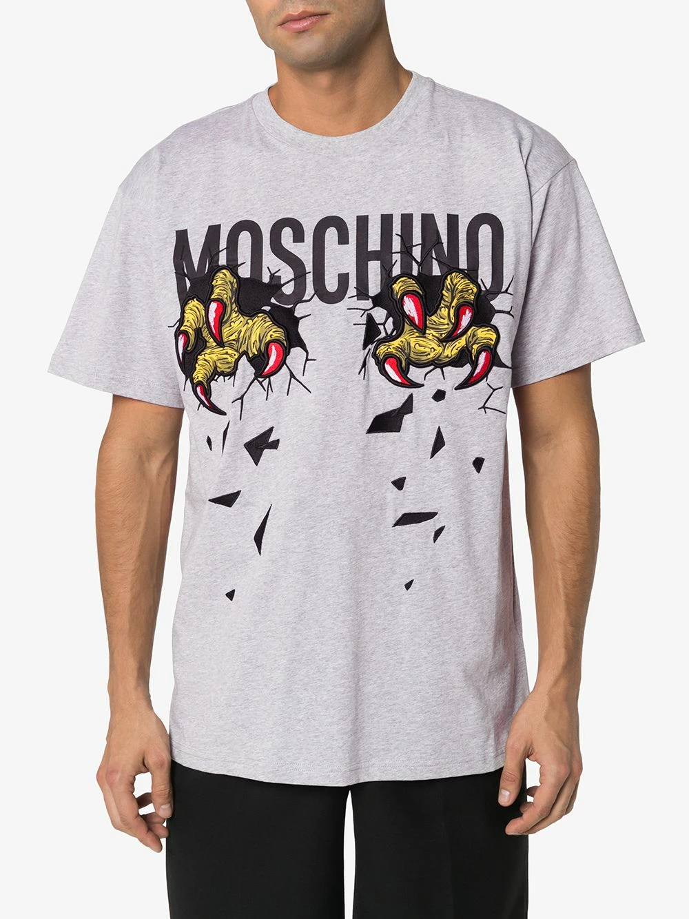 Your friends will be clawing at the chance to get their paws on Moschino’s Creatures T-shirt once they see you wearing it. It’s (naturally) emblazoned with the brand’s logo and cartoon-style claws that look as though they’re thrashing out at the chest. It’s gonna get ya! Featuring a crew neck, a front centre logo stamp, a relaxed fit and a graphic print.