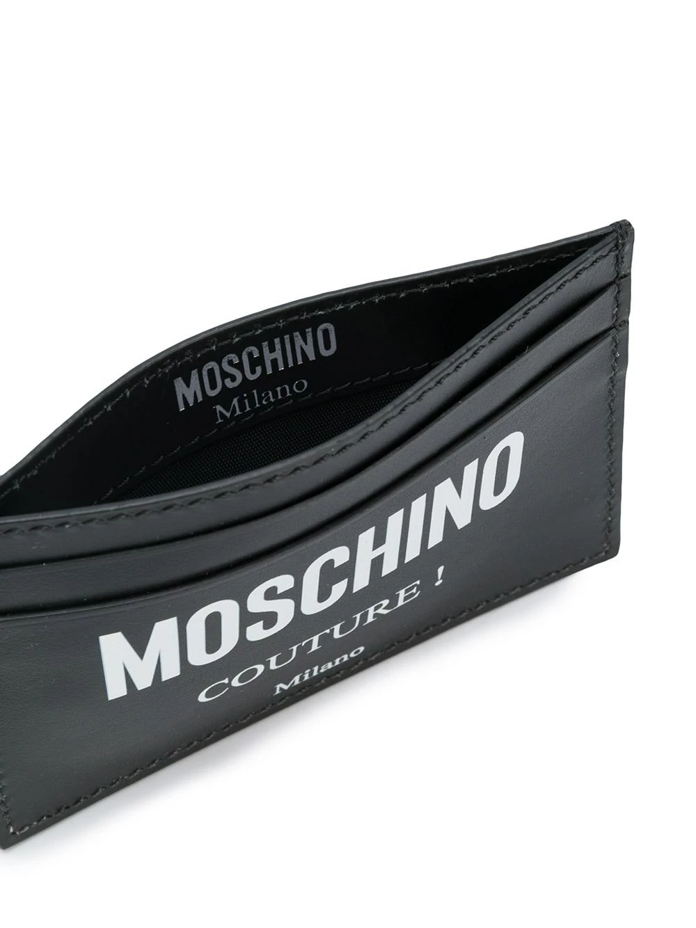 The flamboyant Moschino mode continues to be the perfect combination of pop culture humour and high-end Italian construction, as showcased by this black calf leather logo print cardholder. Featuring multiple card slots, a printed logo to the front and an internal logo stamp.