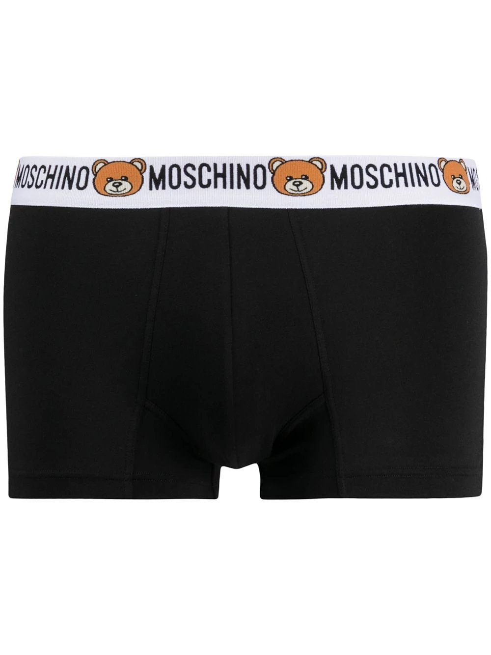 They say it’s what’s underneath that counts. So make sure you’re ready for when the moment arises and wear these black stretch cotton logo waistband boxer briefs from Moschino. You’ll thank us for it. Featuring a stretch fit and stitched panels. Underwear and lingerie must be tried on over your own garments.