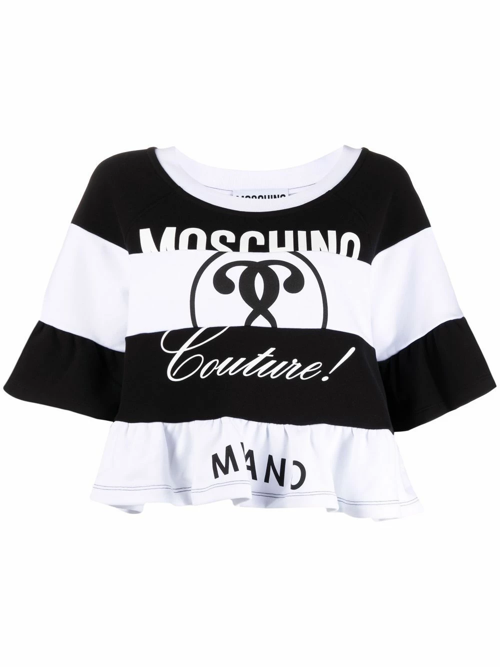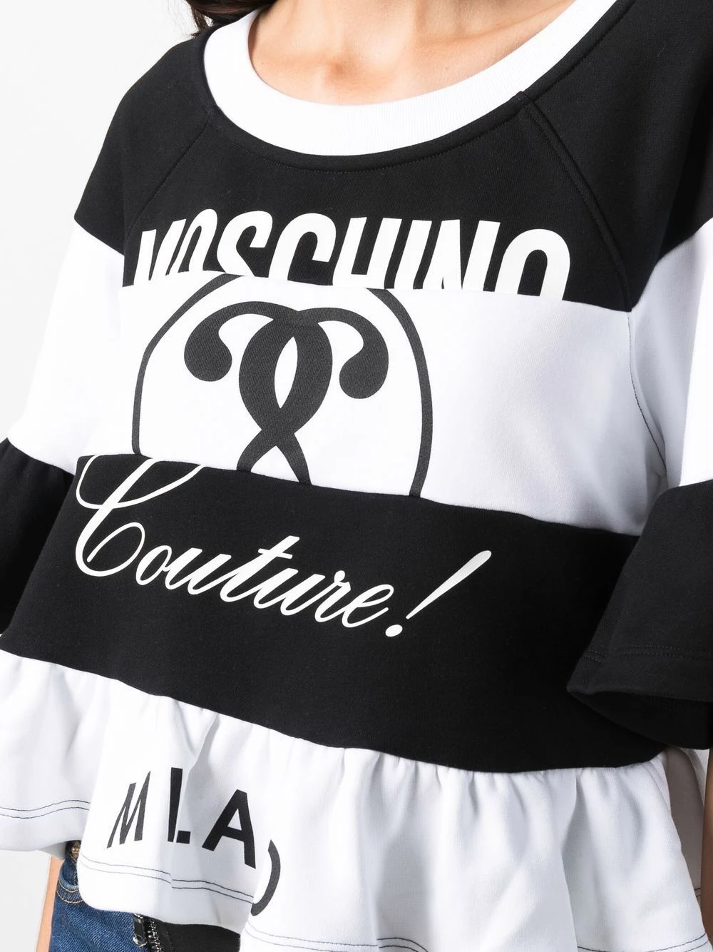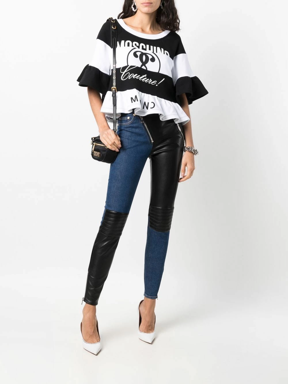 Never one to shy away from bold logos, Moschino presents this T-shirt. Crafted from cotton, the peplum silhouette is decorated with a patchwork print of two of the brand’s iconic motifs.