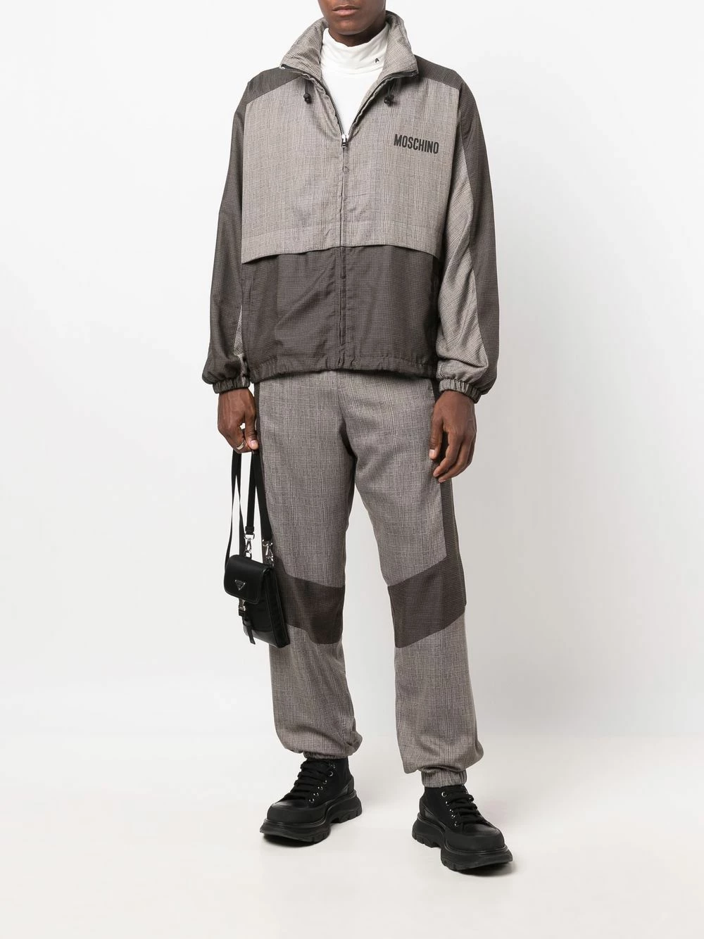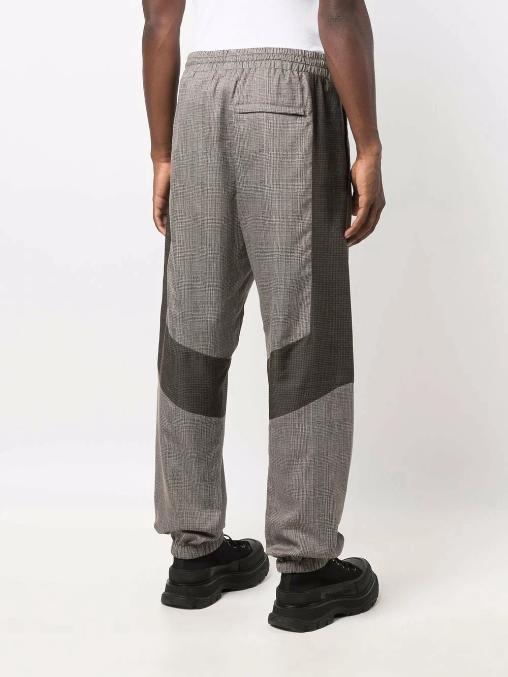 Crafted from a soft wool blend, these trousers from Moschino have been designed with comfort in mind. Their relaxed fit is complemented by an elasticated waistband and cuffs that add to the laid-back feel. A panelled construction offers a sleek finishing touch to this piece.ย