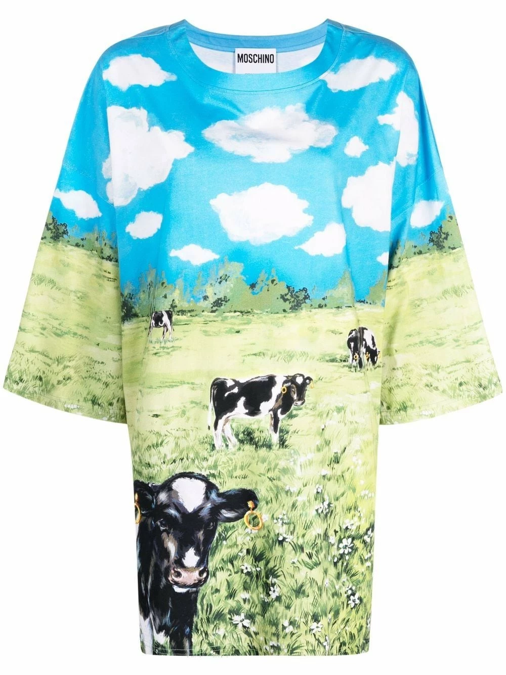 Designated ‘Jungle Red’, Moschino’s AW21 collection finds inspiration in nature, and this T-shirt dress is a prime example of that. Constructed from cotton, this wide-sleeved silhouette celebrates the brand’s playful side with the illustration-style Farm print.