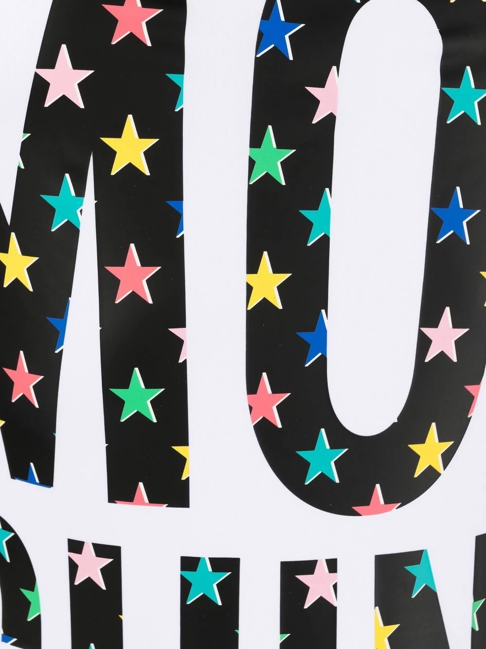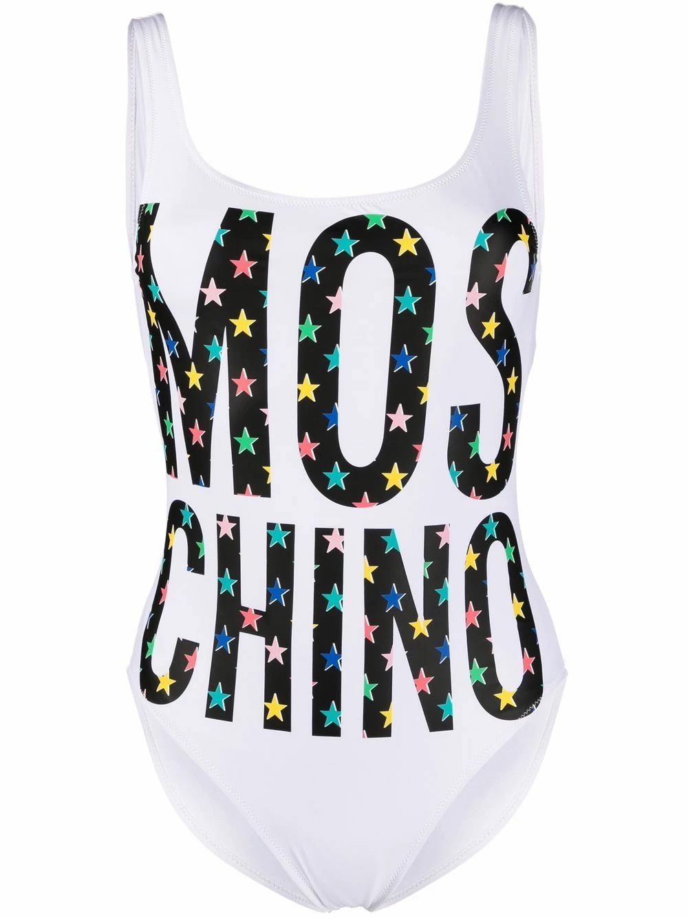 Looks like Jeremy Scott is not only a fashion designer but also a film director. Moschinoโs AW21 collection is an ode to old Hollywood glamour featuring the brand’s logo printed on the front and multicolour star prints – as seen on this maxi-logo swimsuit.