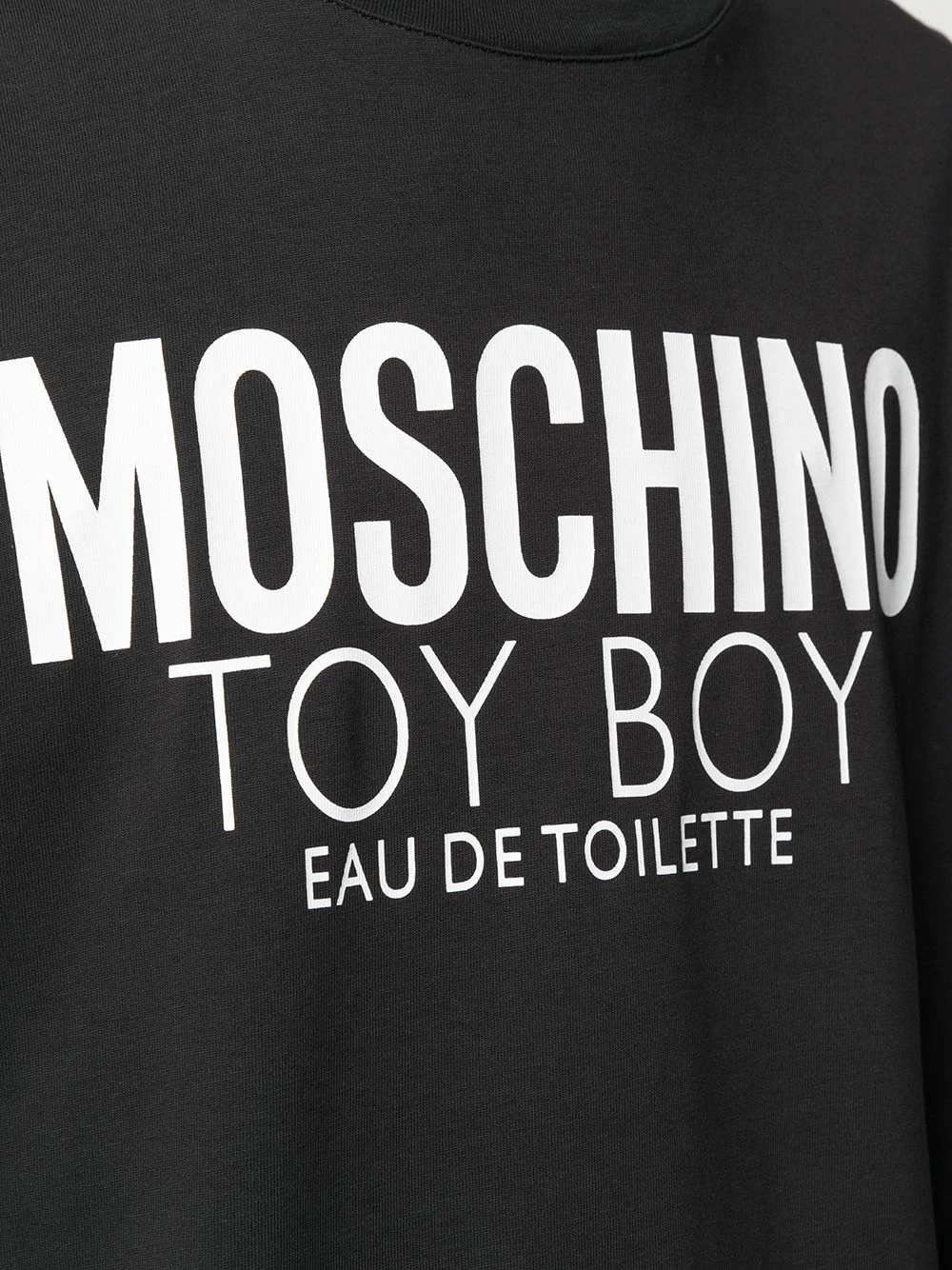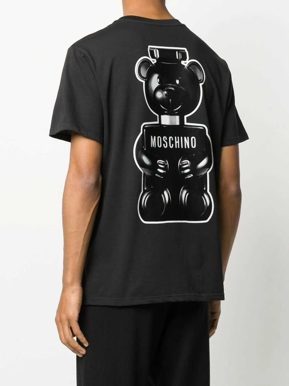 Wake up and smell the opportunity of a new day. Start your morning right by looking great in this toy boy perfume T-shirt from Moschino that is feels joyous to wear thanks to a lightweight and jersey knit construction.ย