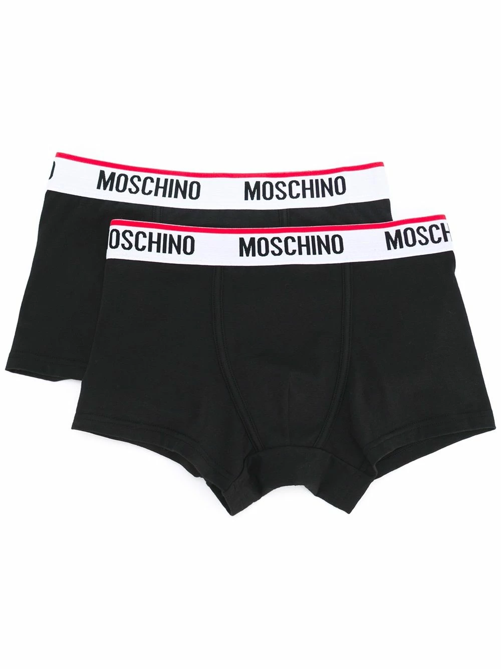 Moschinoโs playful approach to fashion is easily recognised for its cheeky slogans and rebellious attitude. These logo trimmed briefs will make a hard working addition to your underwear uniform. This two-pack includes a pair of Moschino briefs crafted from black stretch cotton and featuring an elasticated waistband for maximum comfort. This article must be tried on over your own garments.