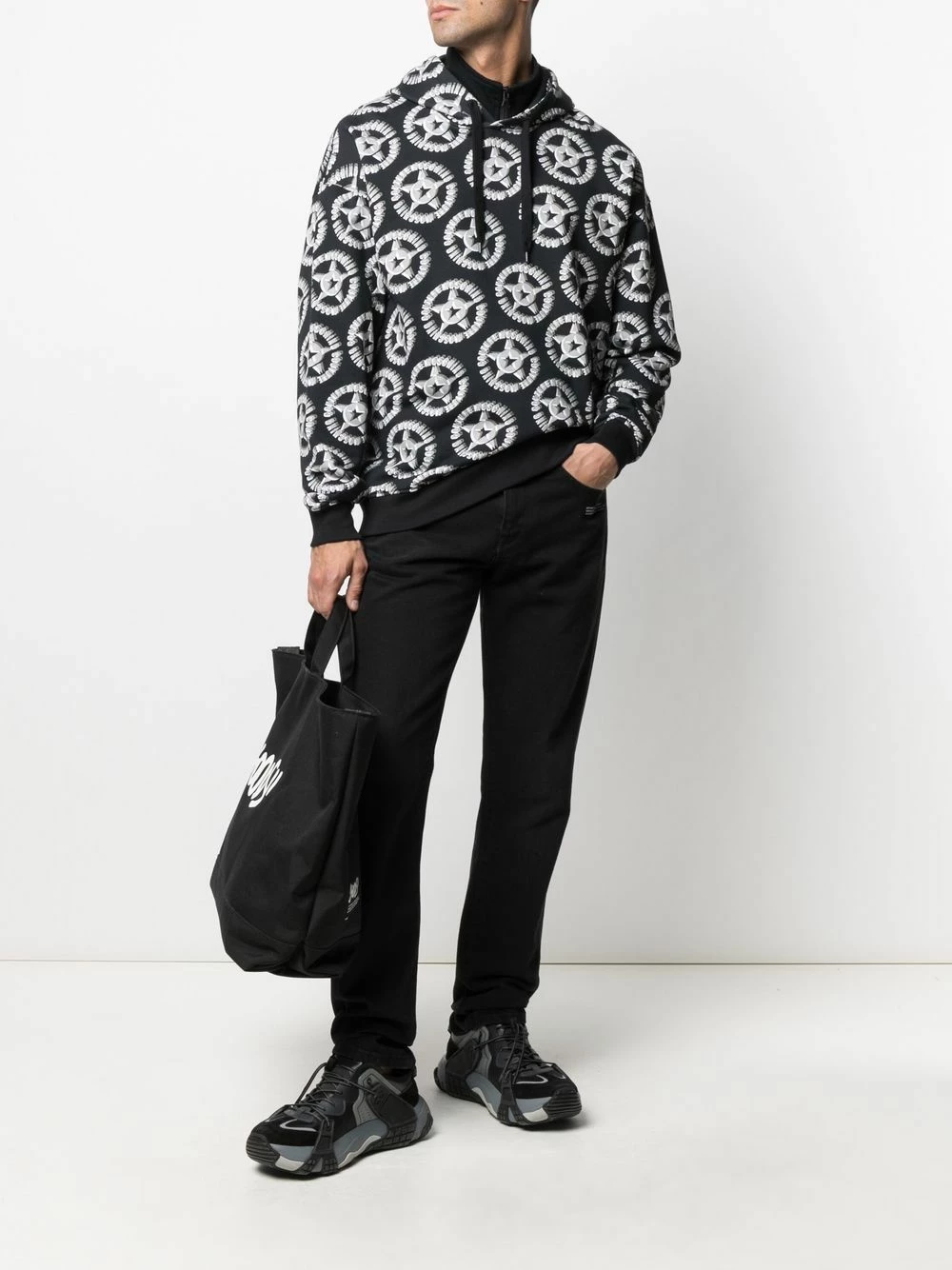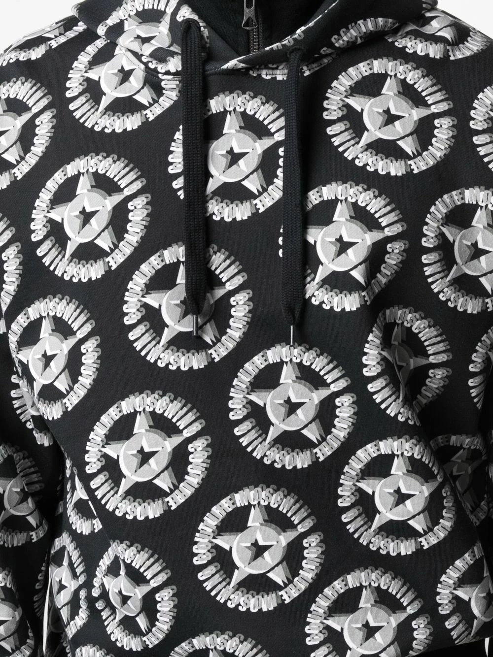 There’s nothing like Moschino. This hoodie is crafted in black cotton with an all-over logo print. Way beyond basic.