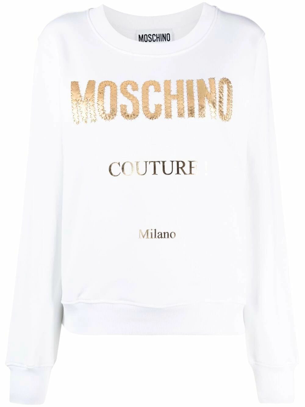 Couture meets casualwear in Moschino. In a 100% cotton construction, this crew neck sweatshirt is embellished with a gold-tone embroidered logo that exudes luxury. Best of both worlds.