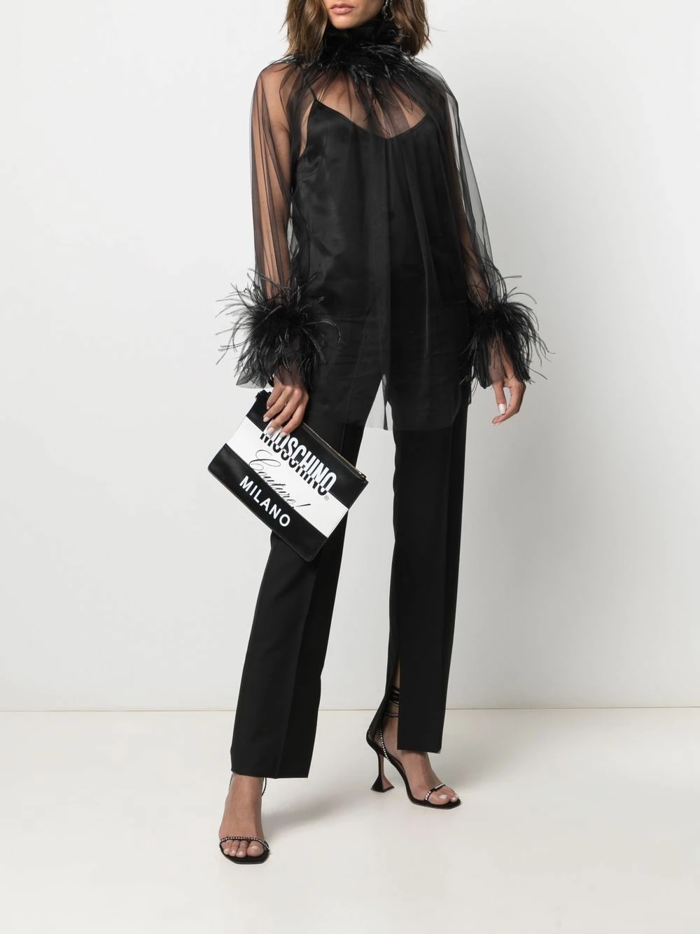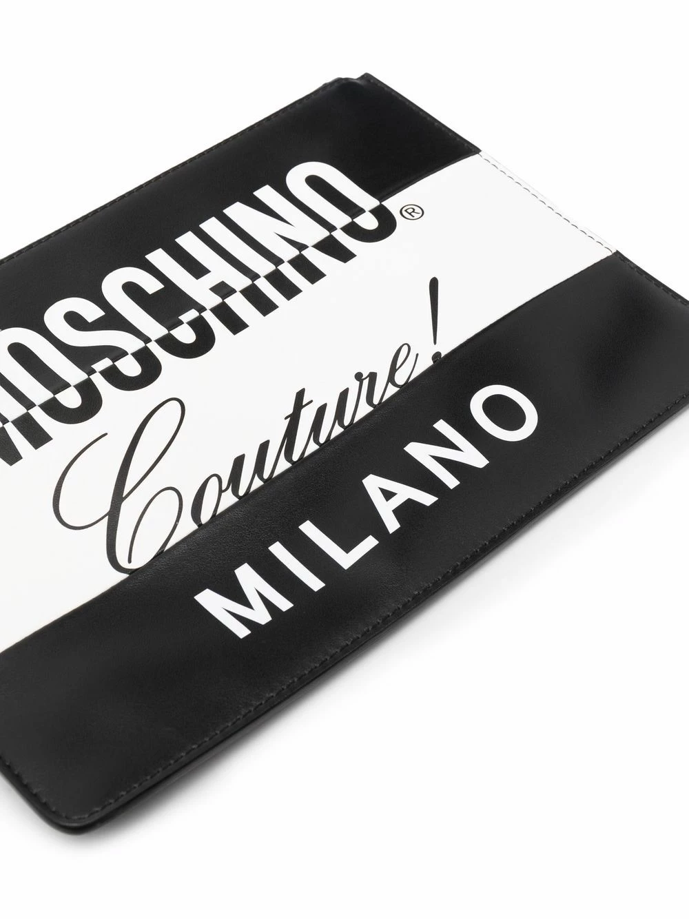 The Moschino Couture logo takes centre stage in this clutch. Crafted from calf leather, this accessory features a two-tone panelled design that highlights the House’s iconic branding.
