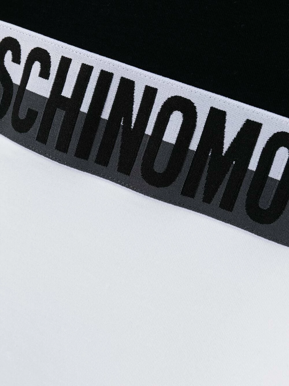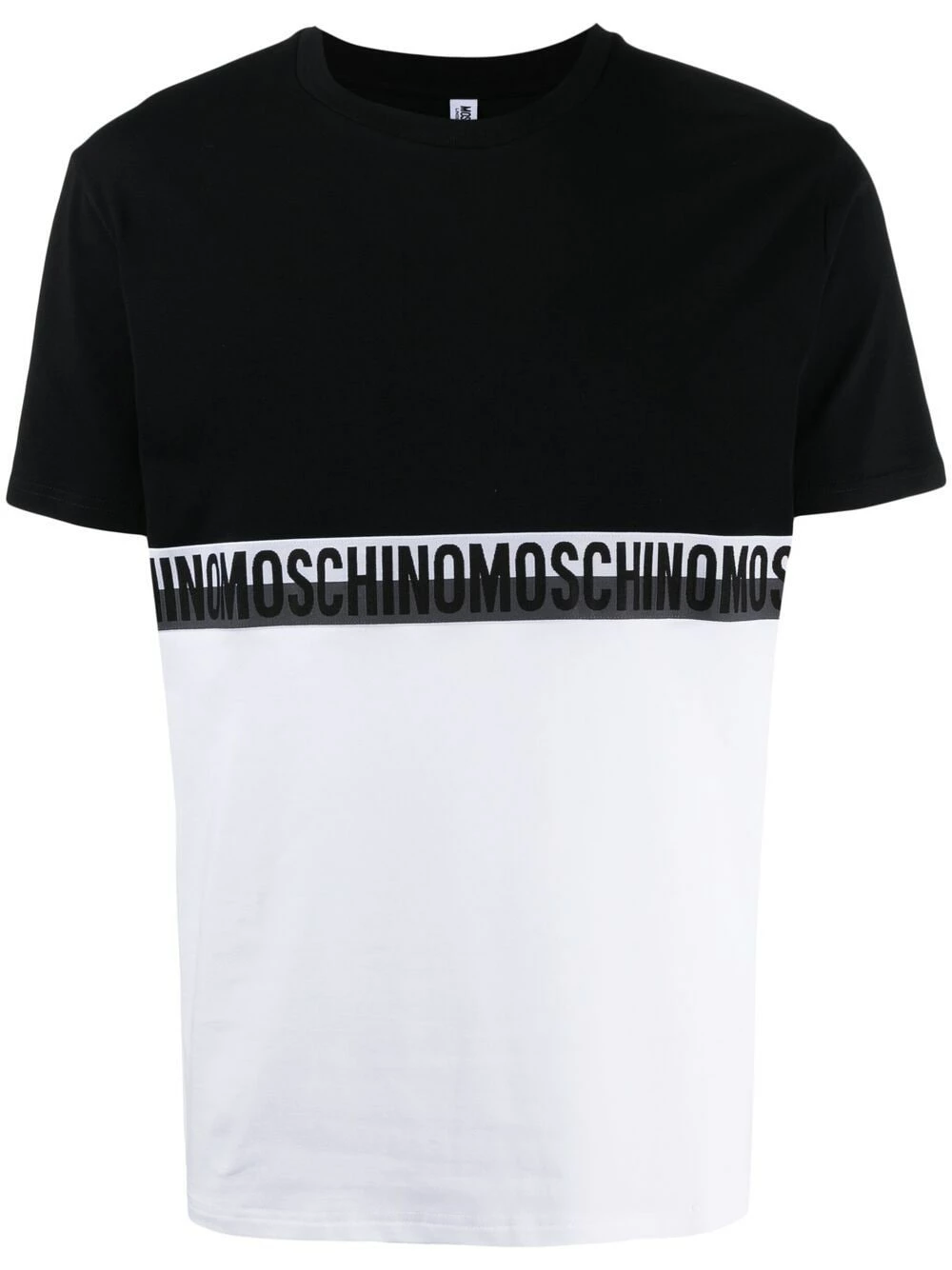 Lounge in luxury with this short-sleeved T-shirt from Moschino. Fabricated from stretch-cotton, the easy-to-wear silhouette boasts a central gradient-effect logo tape detail. Leisurewear just got a whole load more good looking.
