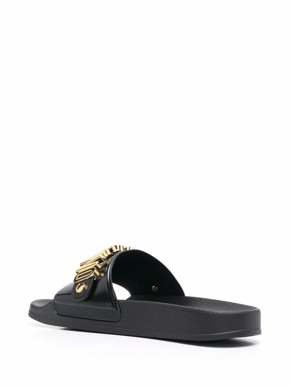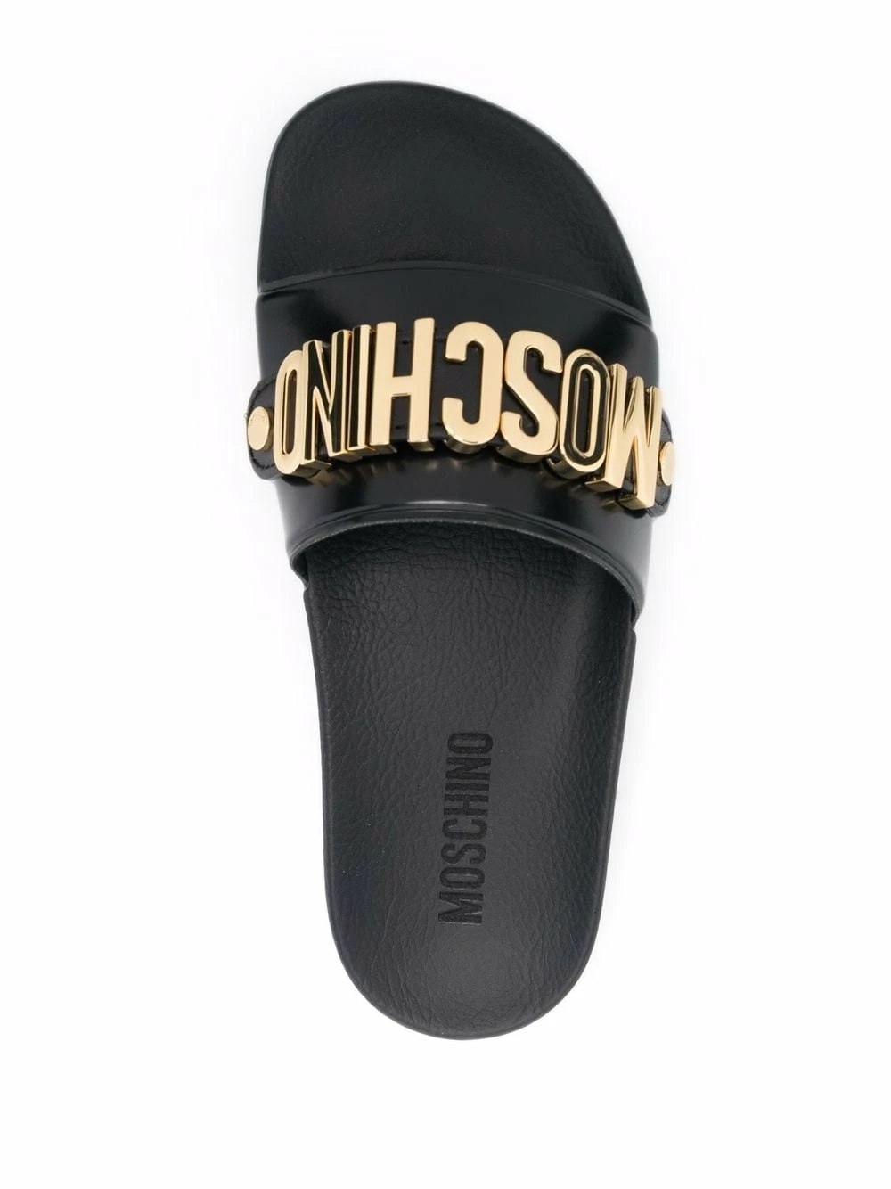 Never one to shy away from bold logos, Moschino presents these slides. Designed for balmy weather, they slip on for summertime ease and feature bold logo lettering on the straps.