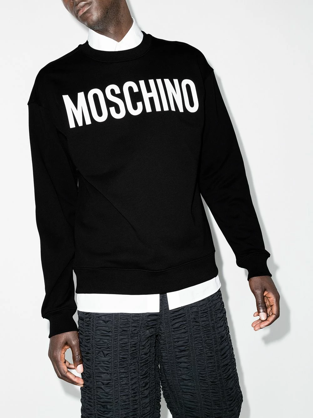 Since 1983, Moschino has represented a rebellious attitude, individuality and wit. However, the Italian brand shows they can also do simple designs, as showcased by this black sweatshirt. Crafted from cotton and cut to a classic silhouette, this piece is elevated by a striking white logo printed across the front.