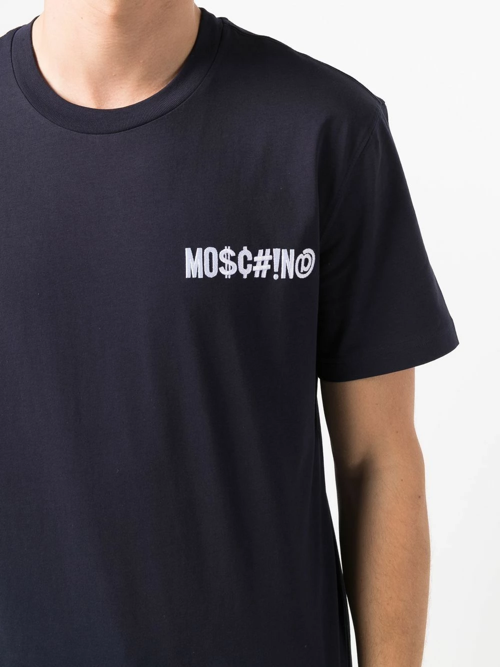 Moschino’s basic T-shirts are back in the new SS21 collection. As per usual, the Italian luxury fashion brand has put together a timeless black design with a little special detail on the front: a printed logo with symbols.