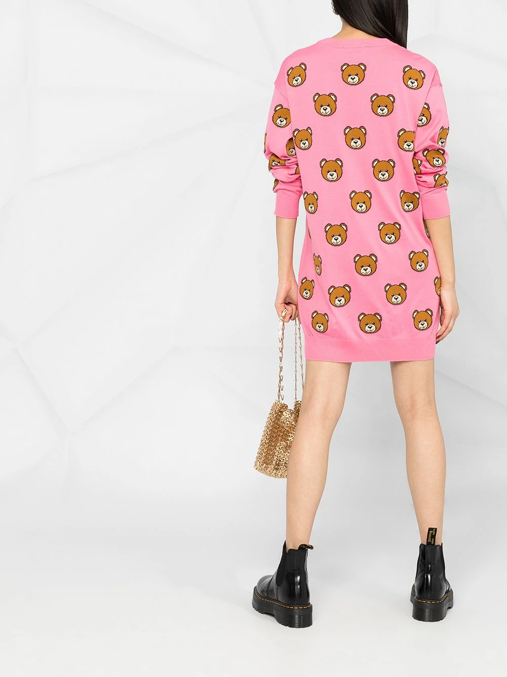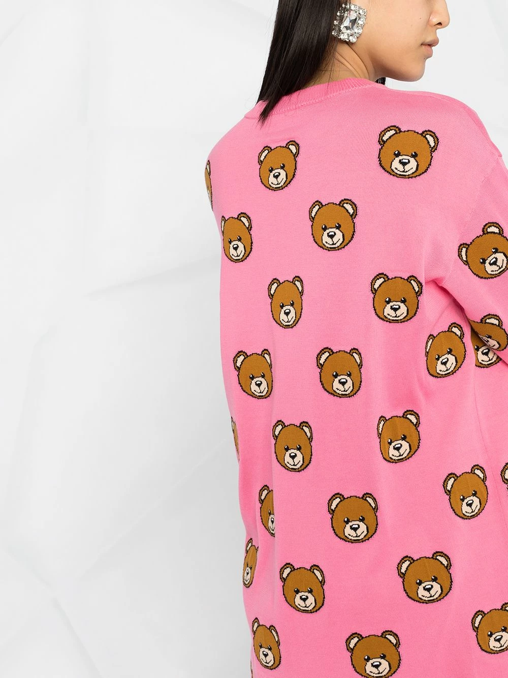 They say that you can have too much of a good thing. But there’s no such thing as too many Moschino bear motifs. The proof is in this intarsia-knit jumper.