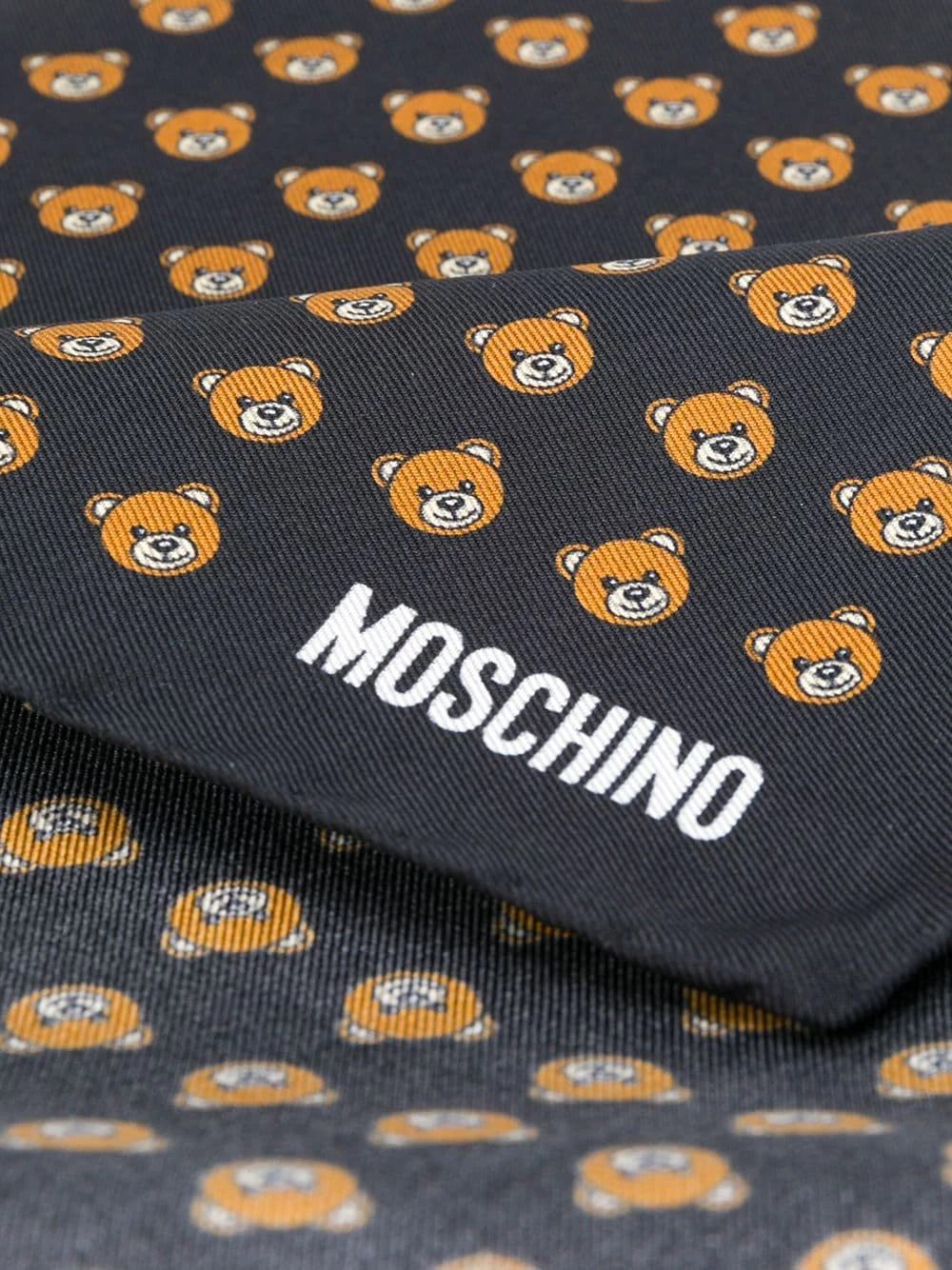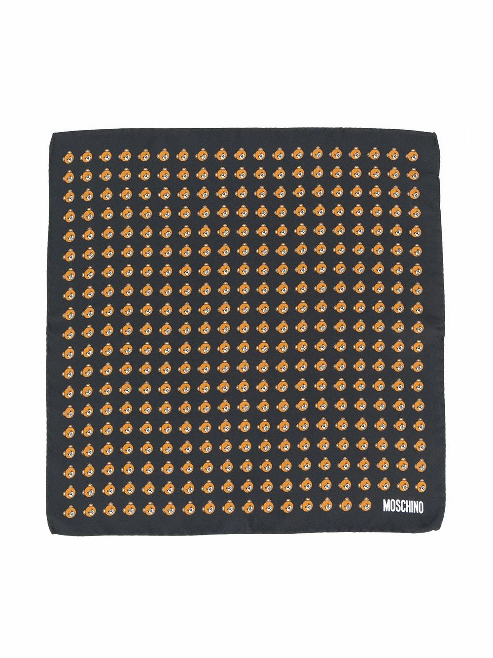 Thanks to the teddy bear motifs, one look at this scarf lets you know it’s a Moschino creation. It’s been made in Italy from black silk and has with the Italian house’s signature stamped on one corner.