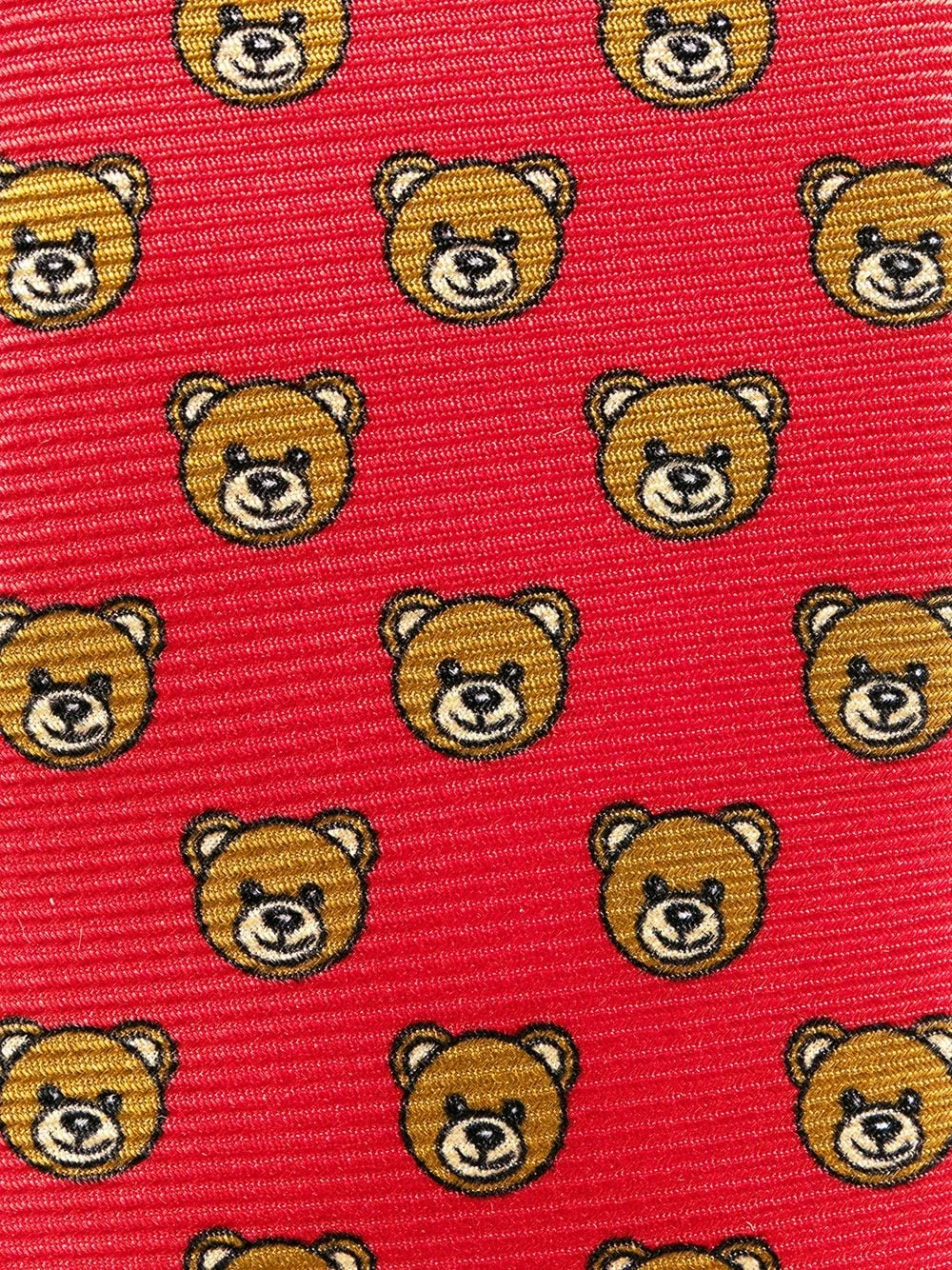 Moschino proves that you can instantly lift staples like a tie with simple details. Made from silk, this red tie has an allover teddy bear print. Unleash your playful side.