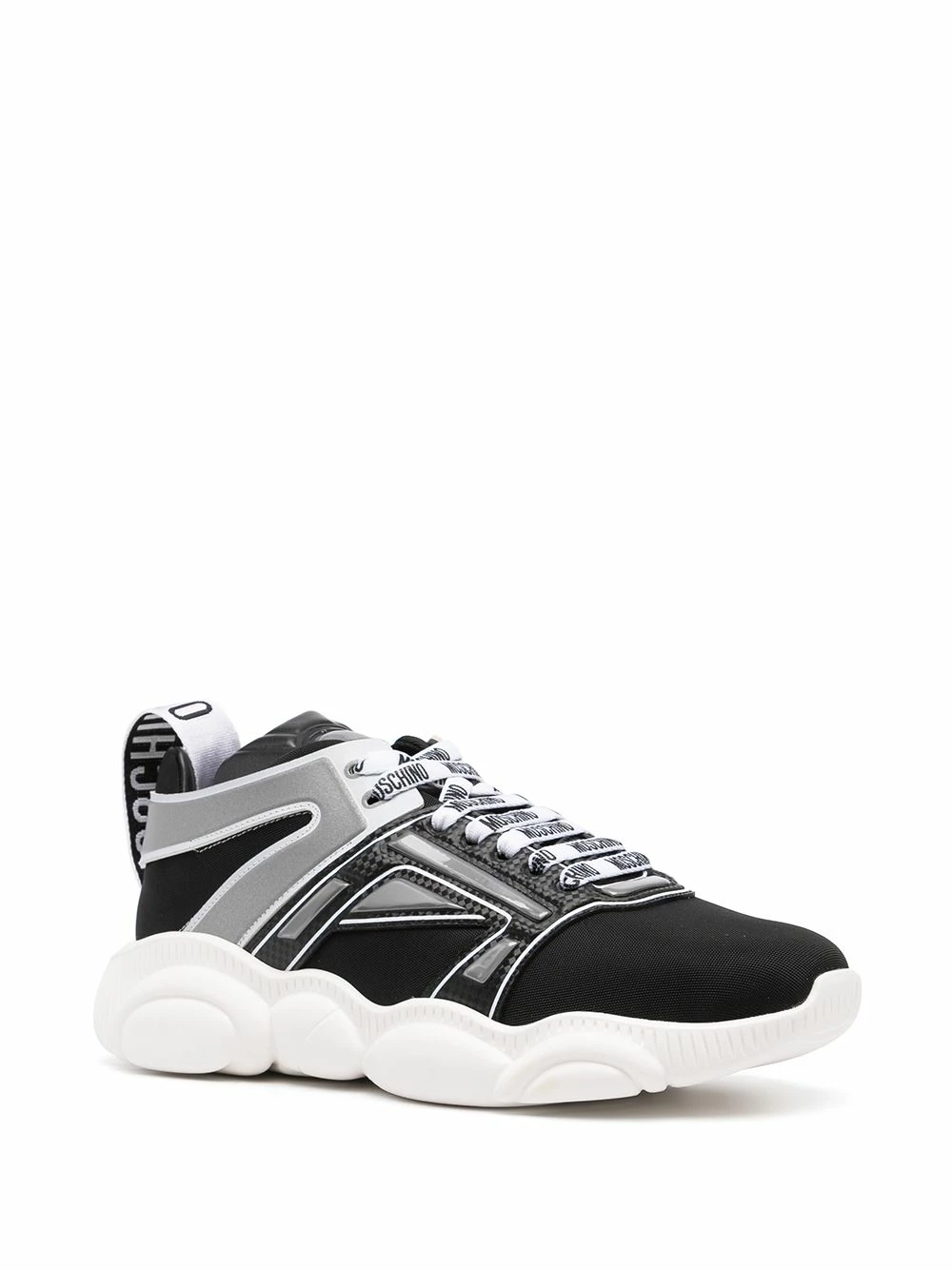 With nods to basketball styles from the ’80s, these Moschino sneakers allow the details to take the focus thanks to an understated monochrome colourway. Underfoot, the brand’s signature Teddy sole adds a quirky touch.