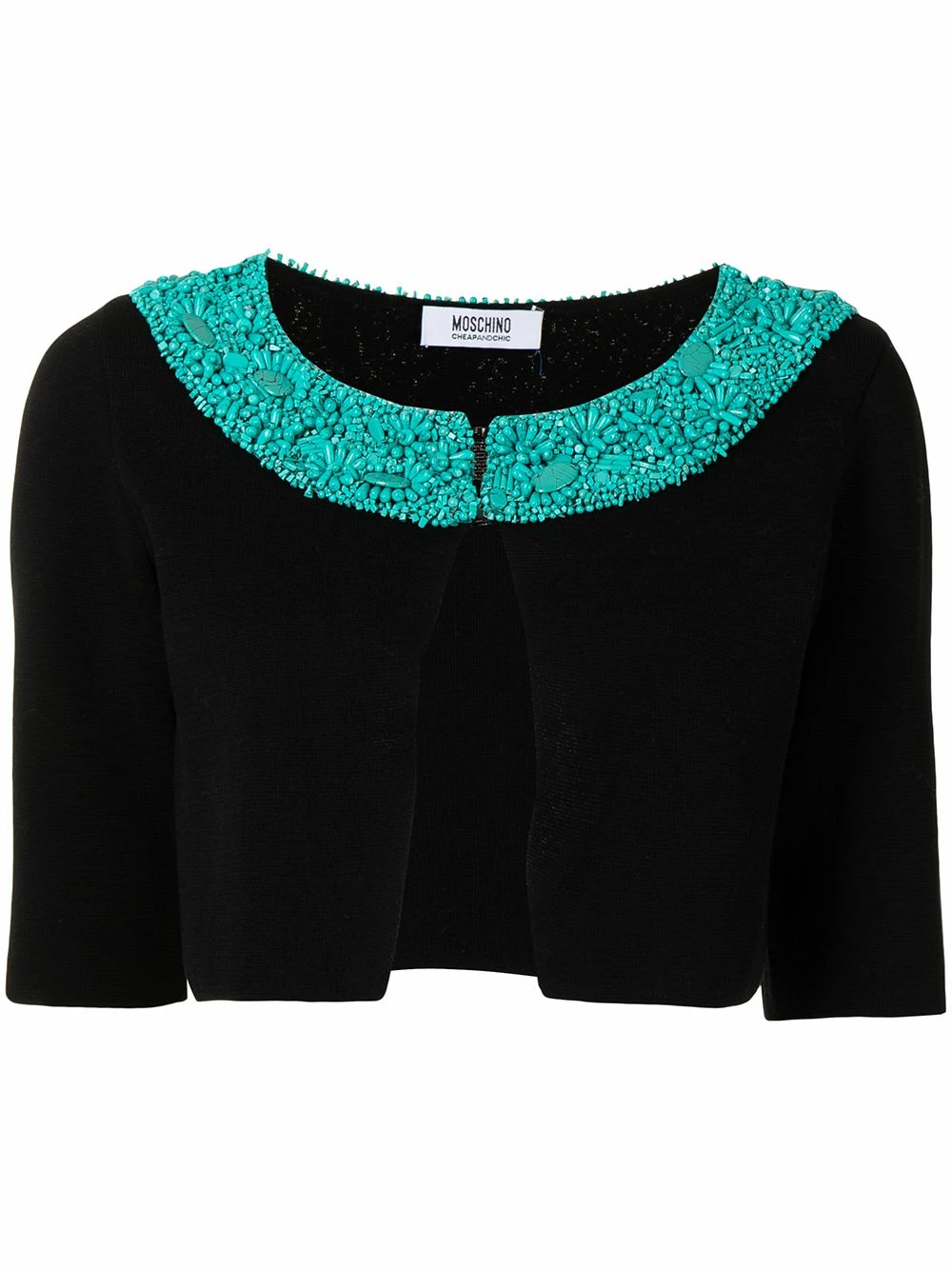 There’s a recipe for creating a piece that you love. And the main ingredient is this bead-embellished cardigan from Moschino. Add it in and witness the magic.