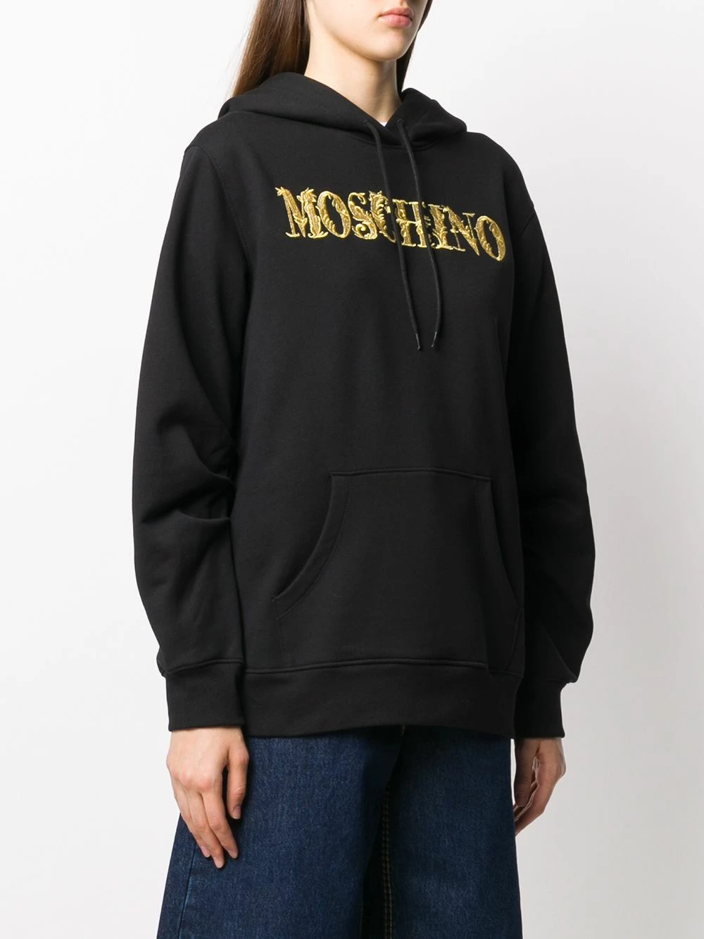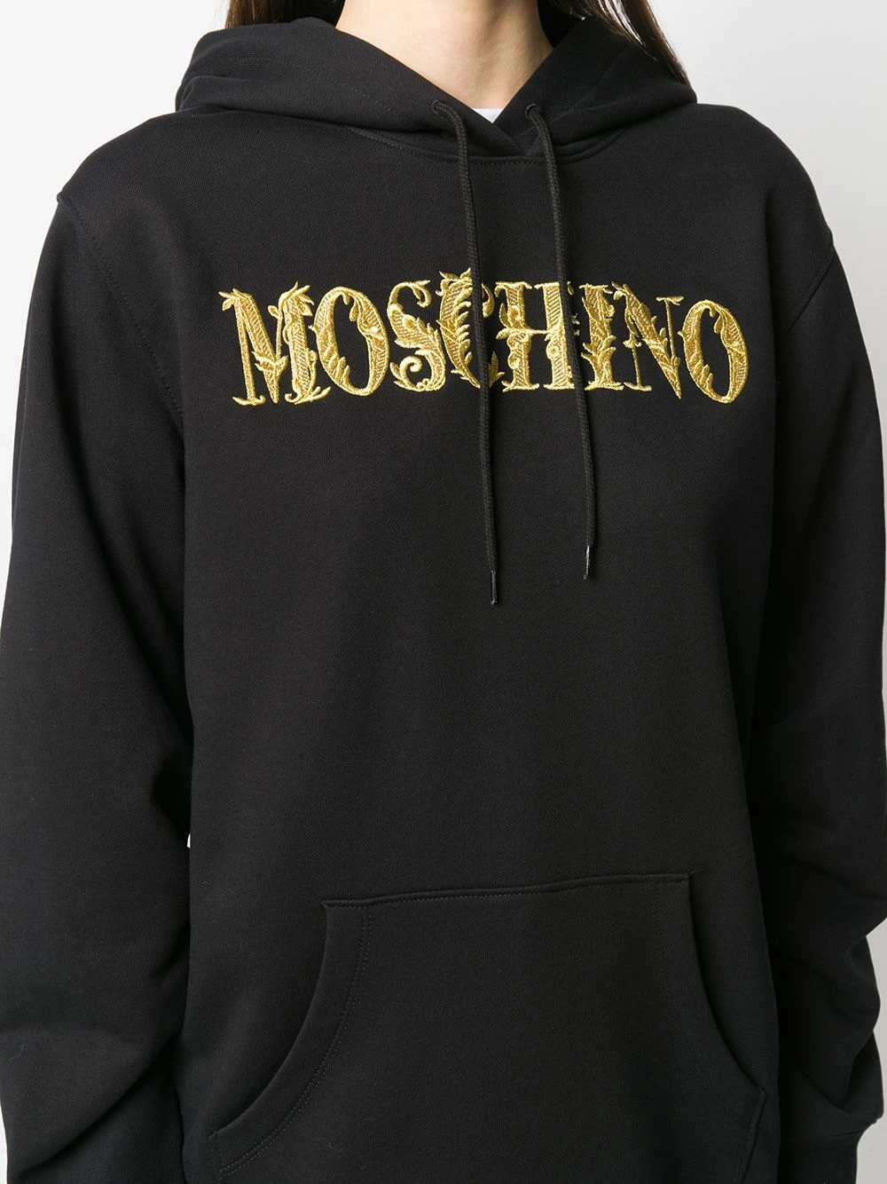 It’s time to add some refinement to your casual style. Designed with a gold-tone embroidered logo on the chest, this Moschino hoodie will make you stand out in the streets. All hail the streetwear queen!