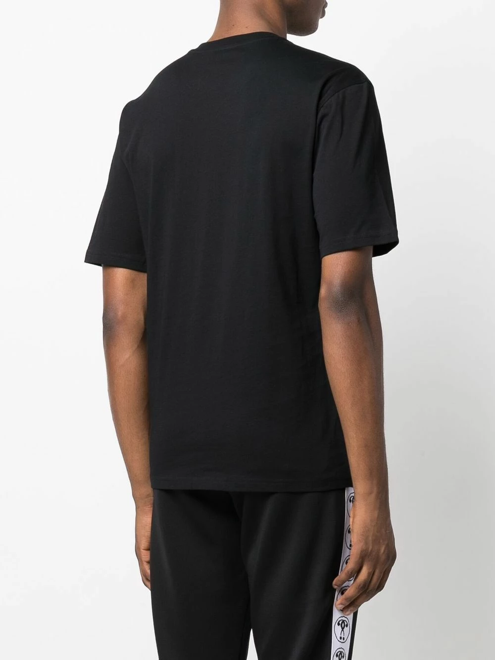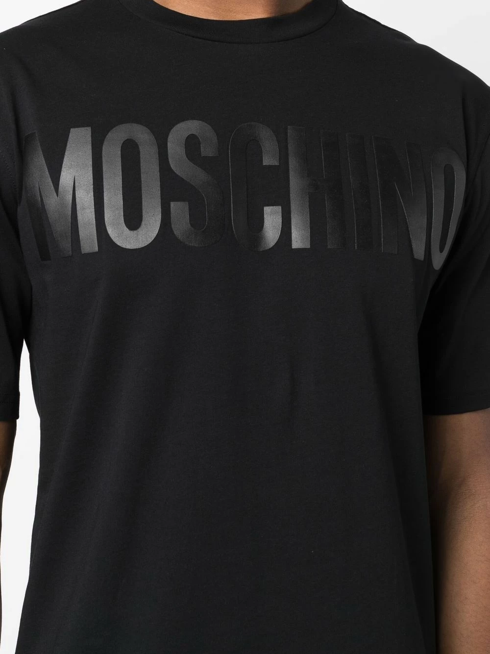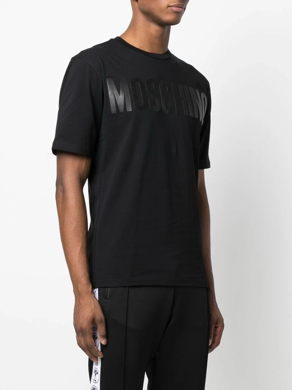 Moschino elevates this simple black organic cotton T-shirt with a tonal logo print at the front, giving the casual staple a signature touch.