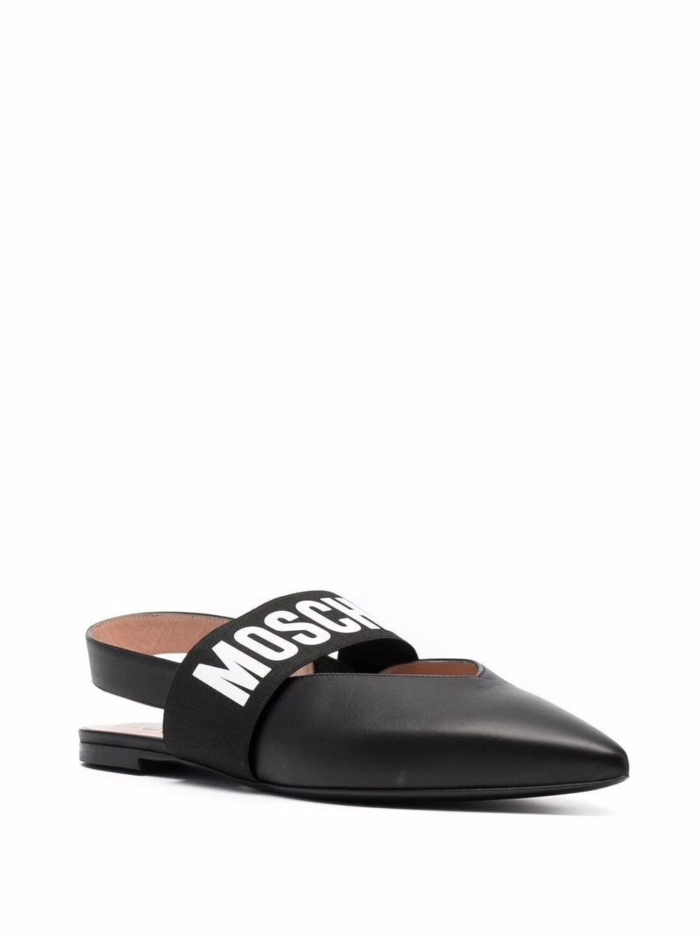 Known for the use of branding and creating bold designs, both of these features are showcased on this pair of ballerina shoes from Moschino. The balance of a large-scale logo print across the width of the design paired with a two-tone palette creates a maximalist feel.