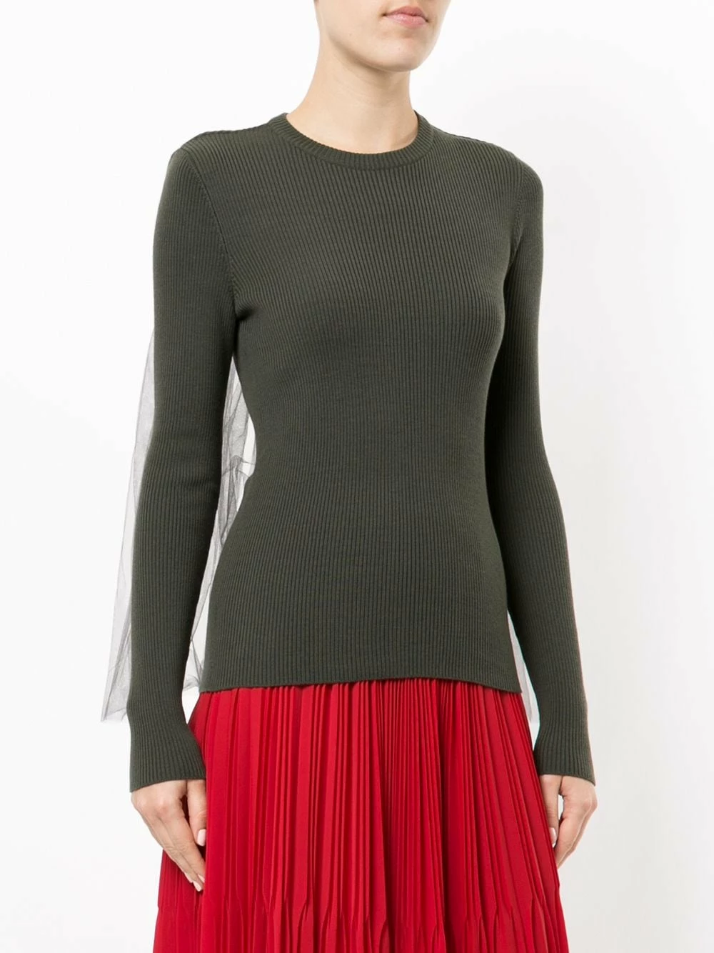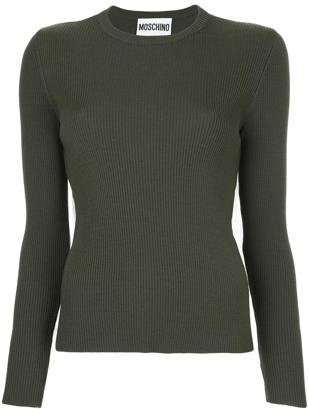 Instantly recognisable for its tongue-in-cheek, youthful aesthetic, Moschino under Jeremy Scott reinvents Italian glamour in the spirit of subversion. Crafted from virgin wool, this crew neck sweater takes a turn for the unexpected with its zipped tulle inset to the rear, offsetting traditional details like the ribbed crew neck, long sleeves and a ribbed hem and cuffs. This item is true to fit.